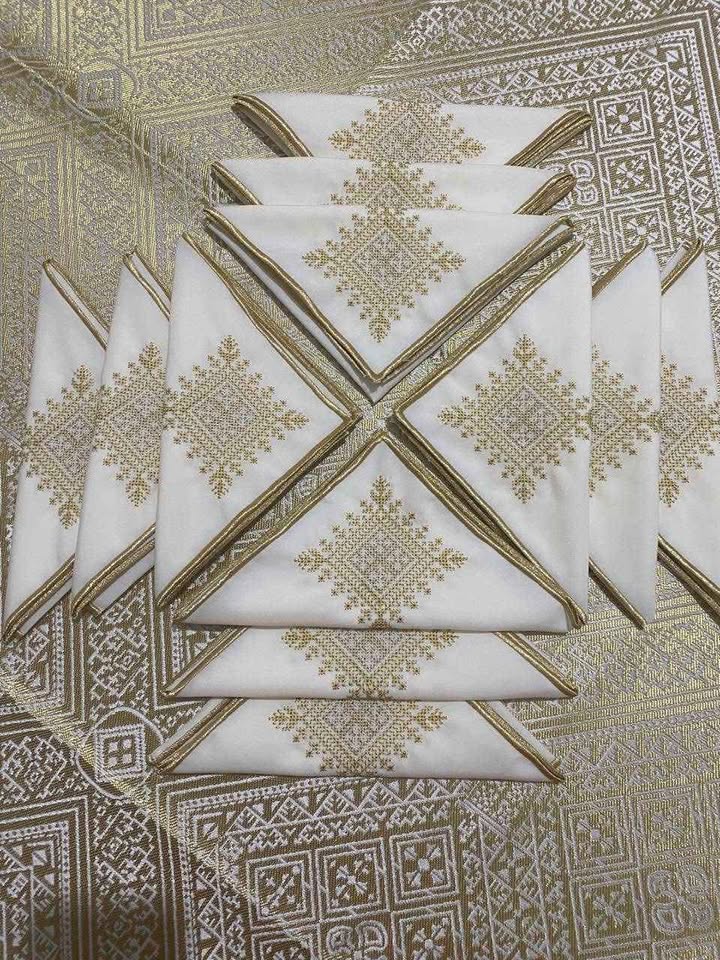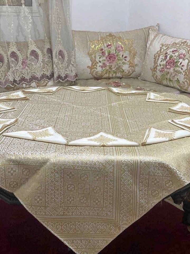 مفرش طاولة فاخر + 12 مناديل __ جودة عالية